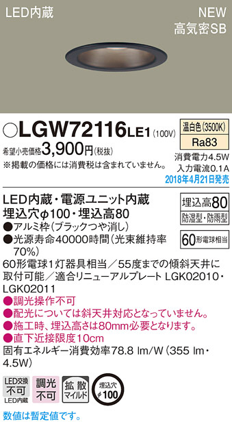 Panasonic ¥À¥¦¥ó¥é¥¤¥È LGW72116LE1