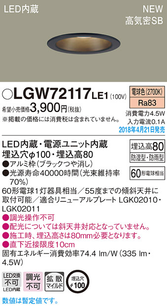 Panasonic ¥À¥¦¥ó¥é¥¤¥È LGW72117LE1