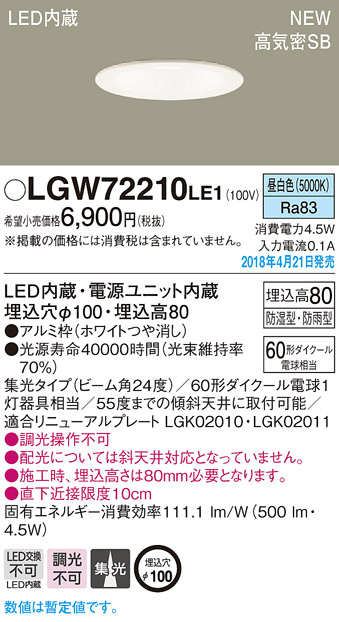 Panasonic ¥À¥¦¥ó¥é¥¤¥È LGW72210LE1