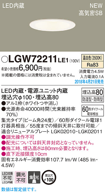 Panasonic ¥À¥¦¥ó¥é¥¤¥È LGW72211LE1