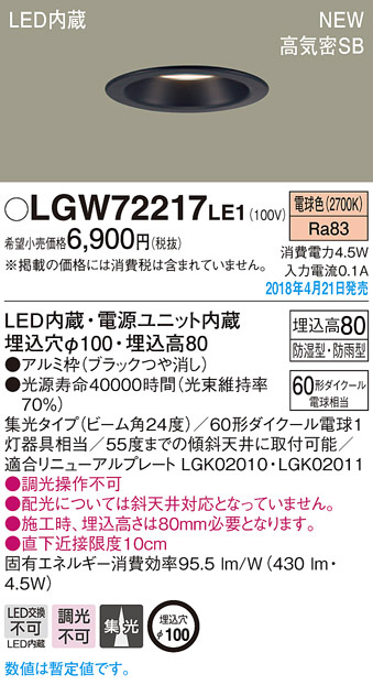 Panasonic ¥À¥¦¥ó¥é¥¤¥È LGW72217LE1