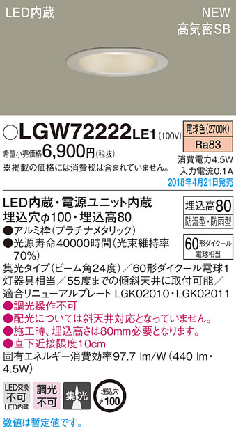 Panasonic ¥À¥¦¥ó¥é¥¤¥È LGW72222LE1