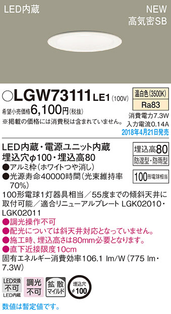 Panasonic ¥À¥¦¥ó¥é¥¤¥È LGW73111LE1