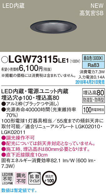Panasonic ¥À¥¦¥ó¥é¥¤¥È LGW73115LE1