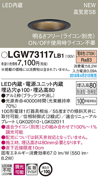 Panasonic ¥À¥¦¥ó¥é¥¤¥È LGW73117LB1