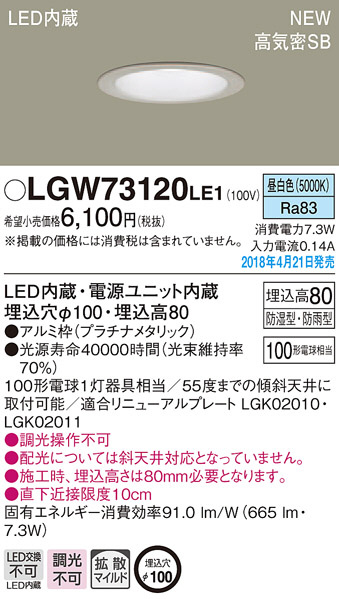 Panasonic ¥À¥¦¥ó¥é¥¤¥È LGW73120LE1