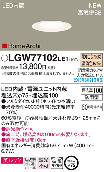 Panasonic ¥À¥¦¥ó¥é¥¤¥È LGW77102LE1