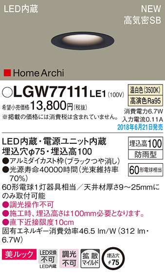 Panasonic ¥À¥¦¥ó¥é¥¤¥È LGW77111LE1