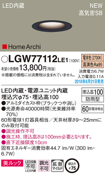 Panasonic ¥À¥¦¥ó¥é¥¤¥È LGW77112LE1