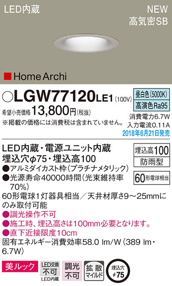 Panasonic ¥À¥¦¥ó¥é¥¤¥È LGW77120LE1
