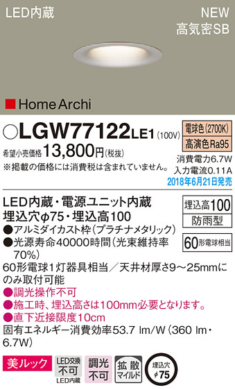 Panasonic ¥À¥¦¥ó¥é¥¤¥È LGW77122LE1