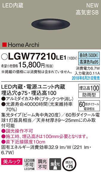 Panasonic ¥À¥¦¥ó¥é¥¤¥È LGW77210LE1