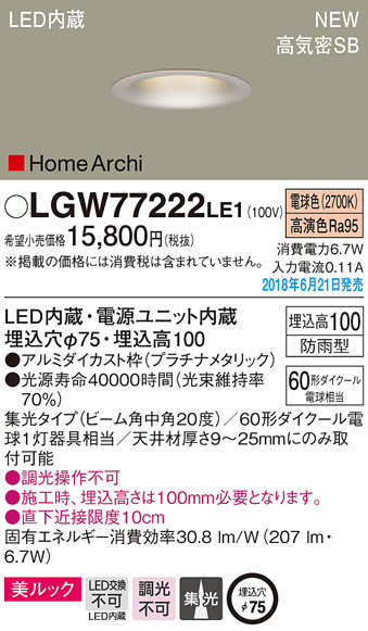 Panasonic ¥À¥¦¥ó¥é¥¤¥È LGW77222LE1