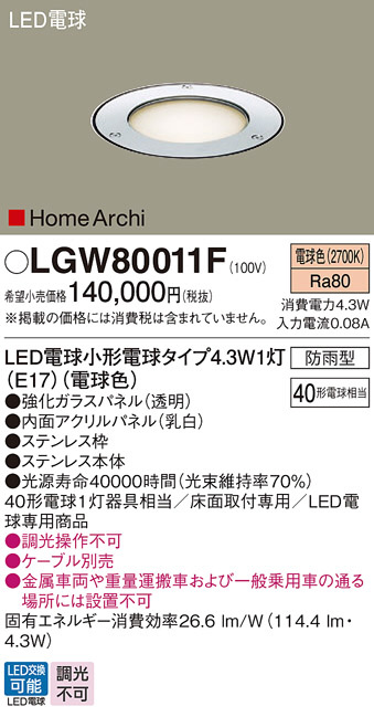 Panasonic ¥¨¥¯¥¹¥Æ¥ê¥¢¥é¥¤¥È LGW80011F