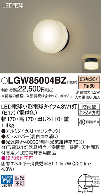 Panasonic ¥¨¥¯¥¹¥Æ¥ê¥¢¥é¥¤¥È LGW85004BZ