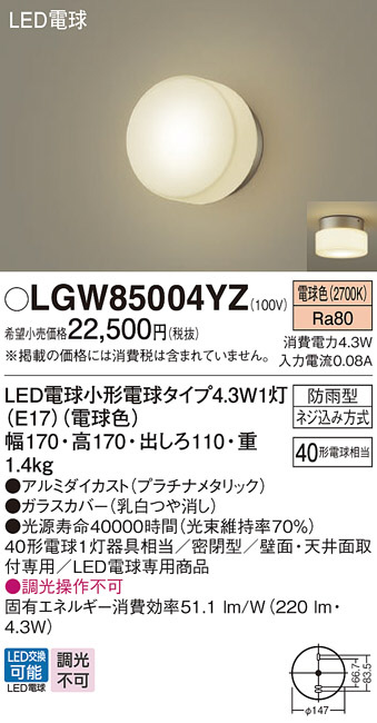 Panasonic ¥¨¥¯¥¹¥Æ¥ê¥¢¥é¥¤¥È LGW85004YZ
