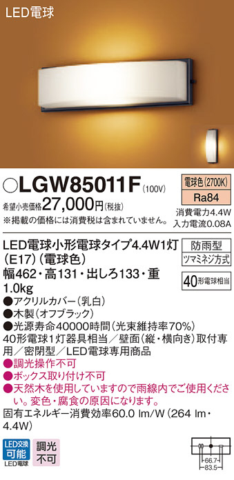 Panasonic ¥¨¥¯¥¹¥Æ¥ê¥¢¥é¥¤¥È LGW85011F