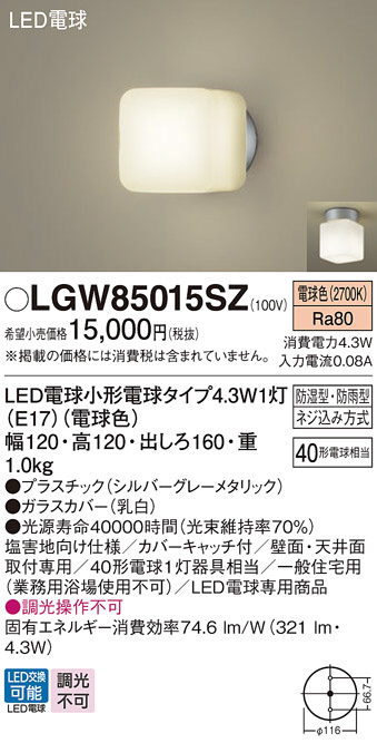 Panasonic ¥¨¥¯¥¹¥Æ¥ê¥¢¥é¥¤¥È LGW85015SZ