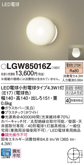 Panasonic ¥¨¥¯¥¹¥Æ¥ê¥¢¥é¥¤¥È LGW85016Z