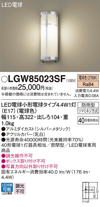 Panasonic ¥¨¥¯¥¹¥Æ¥ê¥¢¥é¥¤¥È LGW85023SF