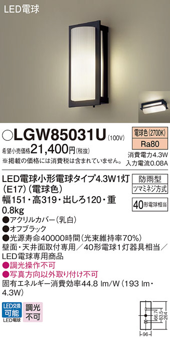 Panasonic ¥¨¥¯¥¹¥Æ¥ê¥¢¥é¥¤¥È LGW85031U