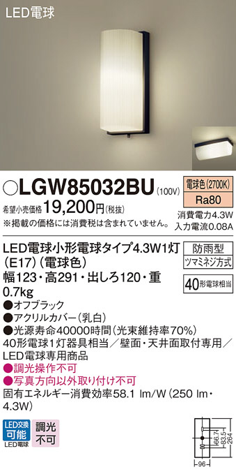 Panasonic ¥¨¥¯¥¹¥Æ¥ê¥¢¥é¥¤¥È LGW85032BU