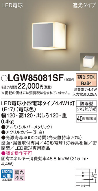 Panasonic ¥¨¥¯¥¹¥Æ¥ê¥¢¥é¥¤¥È LGW85081SF