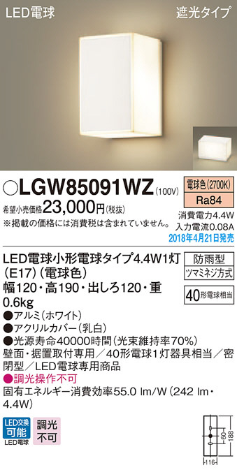 Panasonic ¥¨¥¯¥¹¥Æ¥ê¥¢¡¦¥¢¥¦¥È¥É¥¢ LGW85091WZ