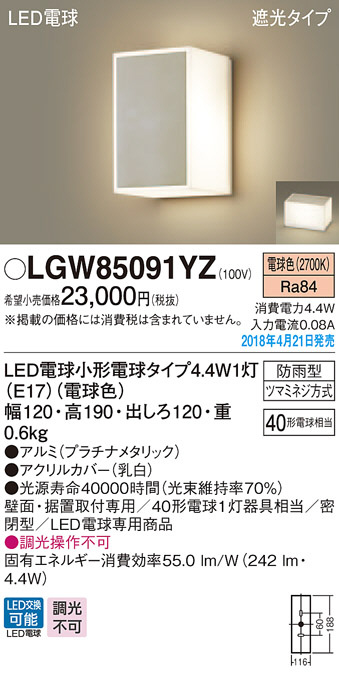 Panasonic ¥¨¥¯¥¹¥Æ¥ê¥¢¡¦¥¢¥¦¥È¥É¥¢ LGW85091YZ