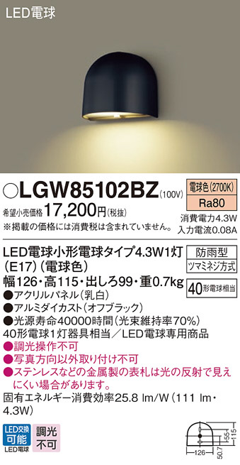 Panasonic ¥¨¥¯¥¹¥Æ¥ê¥¢¥é¥¤¥È LGW85102BZ