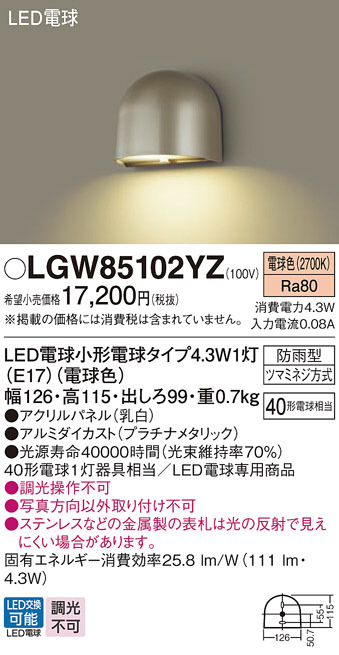 Panasonic ¥¨¥¯¥¹¥Æ¥ê¥¢¥é¥¤¥È LGW85102YZ