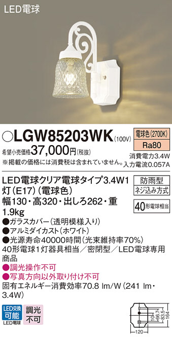 Panasonic ¥¨¥¯¥¹¥Æ¥ê¥¢¥é¥¤¥È LGW85203WK