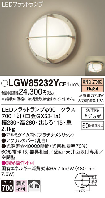 Panasonic ¥¨¥¯¥¹¥Æ¥ê¥¢¥é¥¤¥È LGW85232YCE1