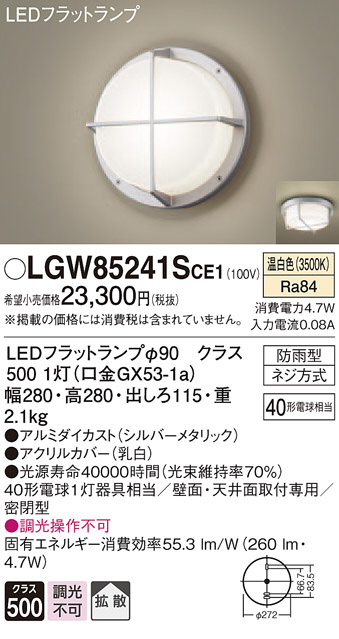 Panasonic ¥¨¥¯¥¹¥Æ¥ê¥¢¥é¥¤¥È LGW85241SCE1