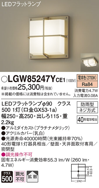 Panasonic ¥¨¥¯¥¹¥Æ¥ê¥¢¥é¥¤¥È LGW85247YCE1
