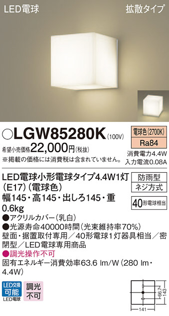Panasonic ¥¨¥¯¥¹¥Æ¥ê¥¢¥é¥¤¥È LGW85280K