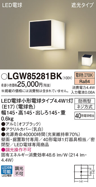 Panasonic ¥¨¥¯¥¹¥Æ¥ê¥¢¥é¥¤¥È LGW85281BK