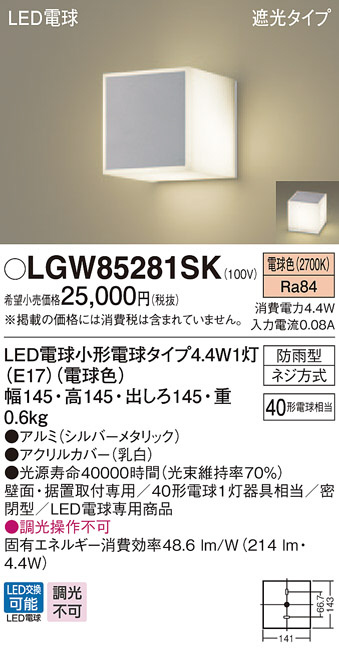 Panasonic ¥¨¥¯¥¹¥Æ¥ê¥¢¥é¥¤¥È LGW85281SK