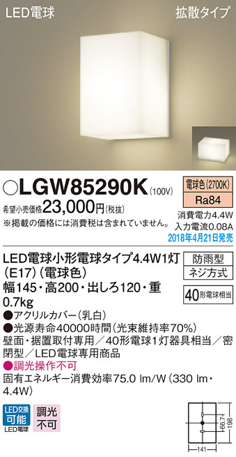 Panasonic ¥¨¥¯¥¹¥Æ¥ê¥¢¡¦¥¢¥¦¥È¥É¥¢ LGW85290K