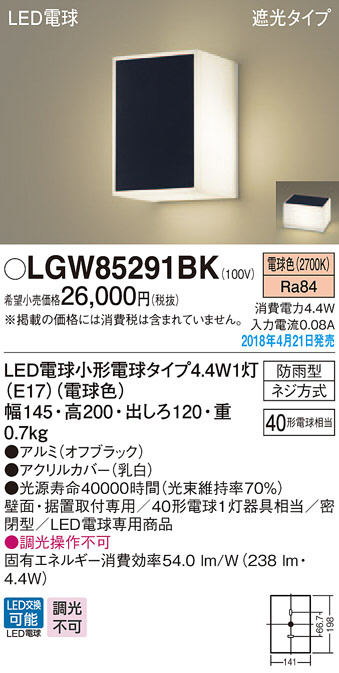 Panasonic ¥¨¥¯¥¹¥Æ¥ê¥¢¡¦¥¢¥¦¥È¥É¥¢ LGW85291BK