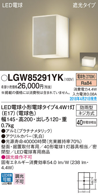 Panasonic ¥¨¥¯¥¹¥Æ¥ê¥¢¡¦¥¢¥¦¥È¥É¥¢ LGW85291YK