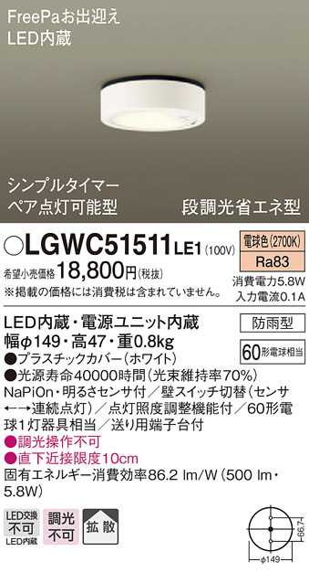 Panasonic ¥¨¥¯¥¹¥Æ¥ê¥¢¥é¥¤¥È LGWC51511LE1