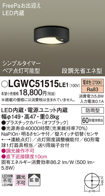 Panasonic ¥¨¥¯¥¹¥Æ¥ê¥¢¥é¥¤¥È LGWC51515LE1