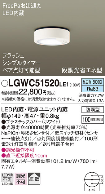 Panasonic ¥¨¥¯¥¹¥Æ¥ê¥¢¥é¥¤¥È LGWC51520LE1