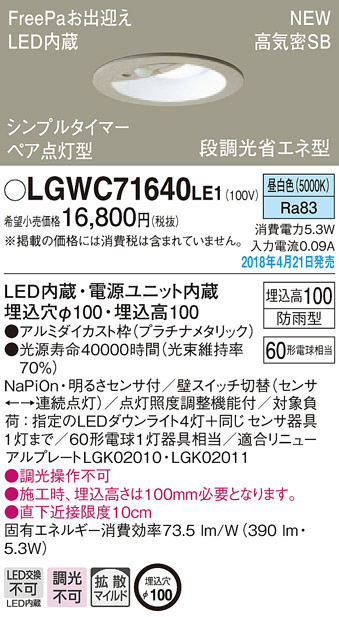 Panasonic ¥À¥¦¥ó¥é¥¤¥È LGWC71640LE1