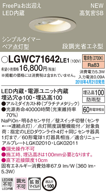 Panasonic ¥À¥¦¥ó¥é¥¤¥È LGWC71642LE1