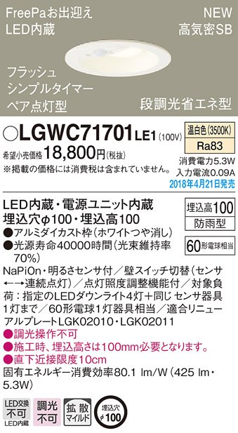 Panasonic ¥À¥¦¥ó¥é¥¤¥È LGWC71701LE1
