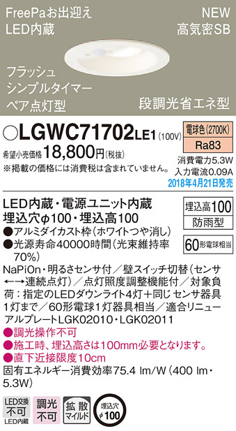 Panasonic ¥À¥¦¥ó¥é¥¤¥È LGWC71702LE1
