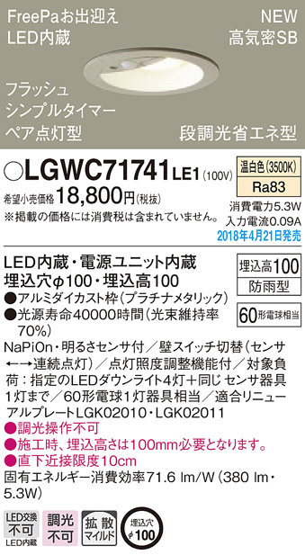 Panasonic ¥À¥¦¥ó¥é¥¤¥È LGWC71741LE1