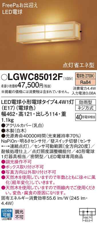 Panasonic ¥¨¥¯¥¹¥Æ¥ê¥¢¥é¥¤¥È LGWC85012F